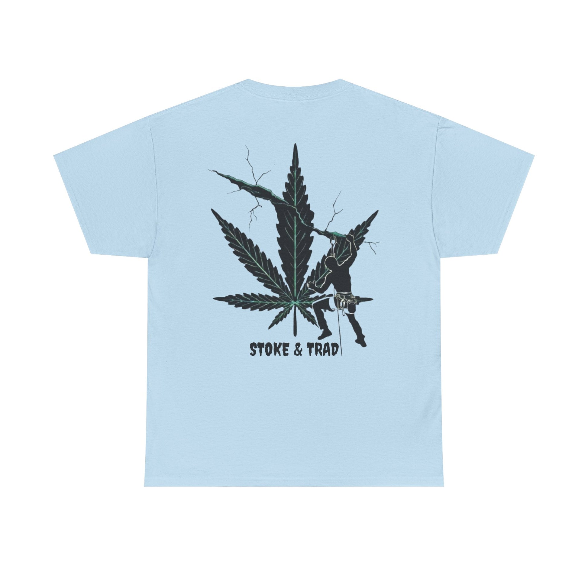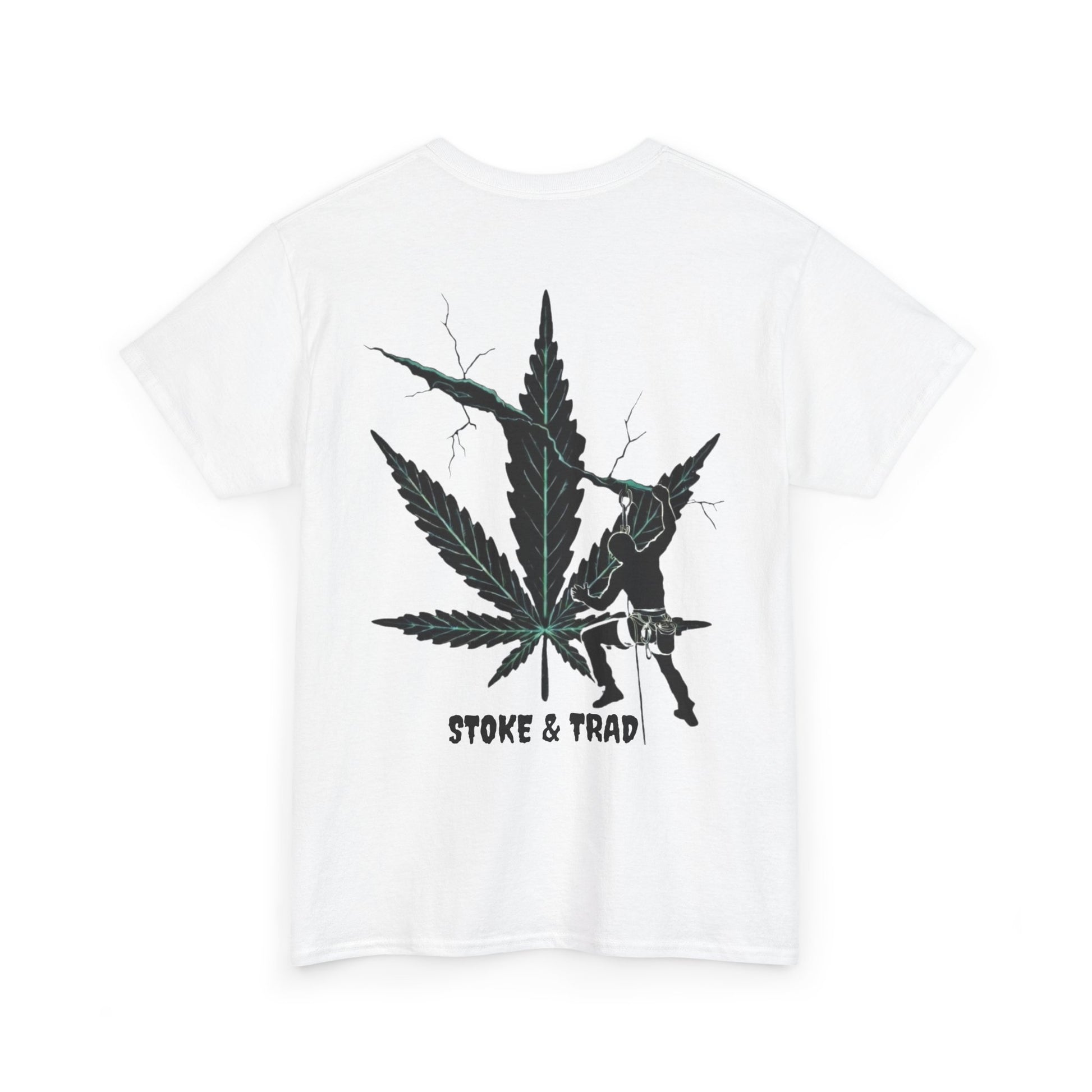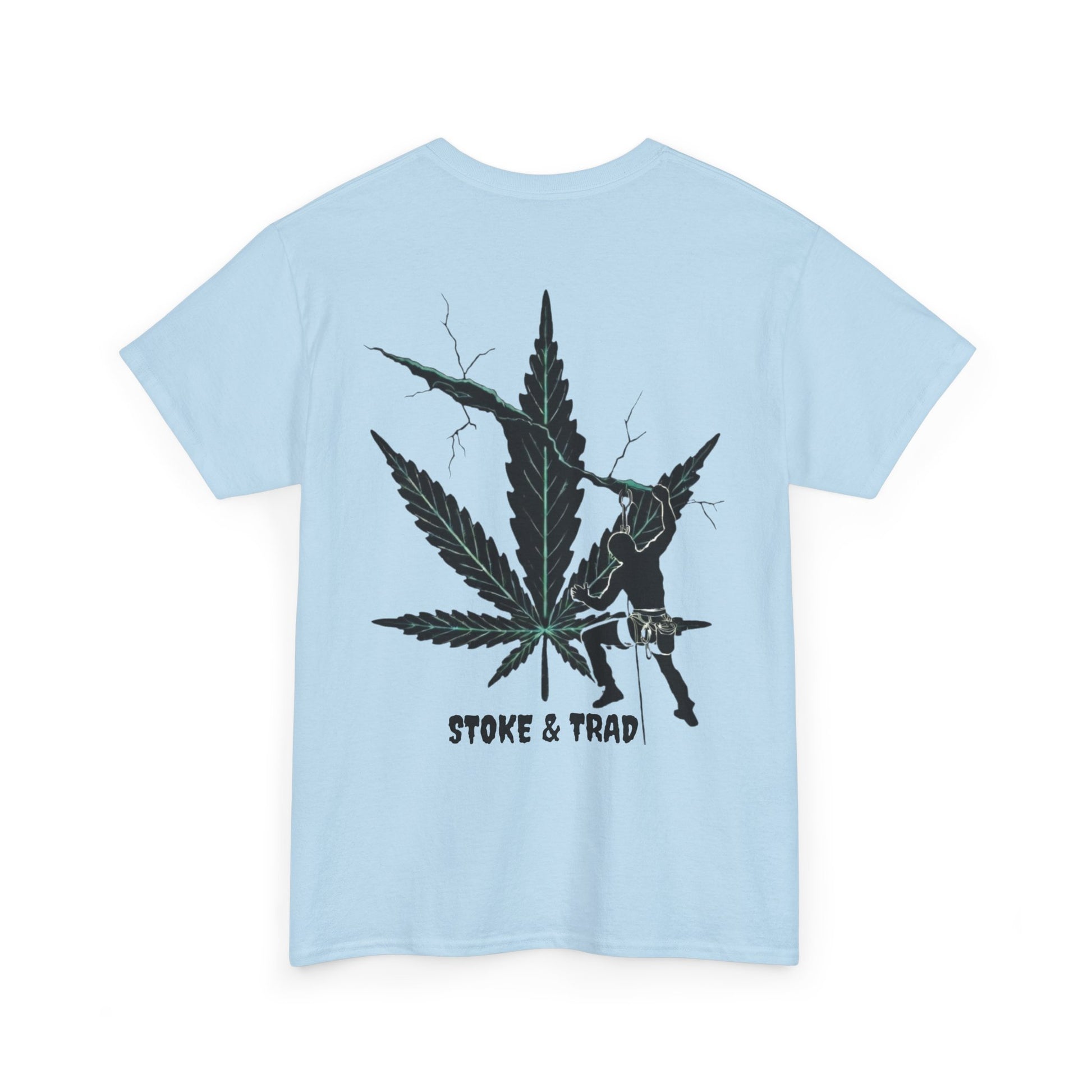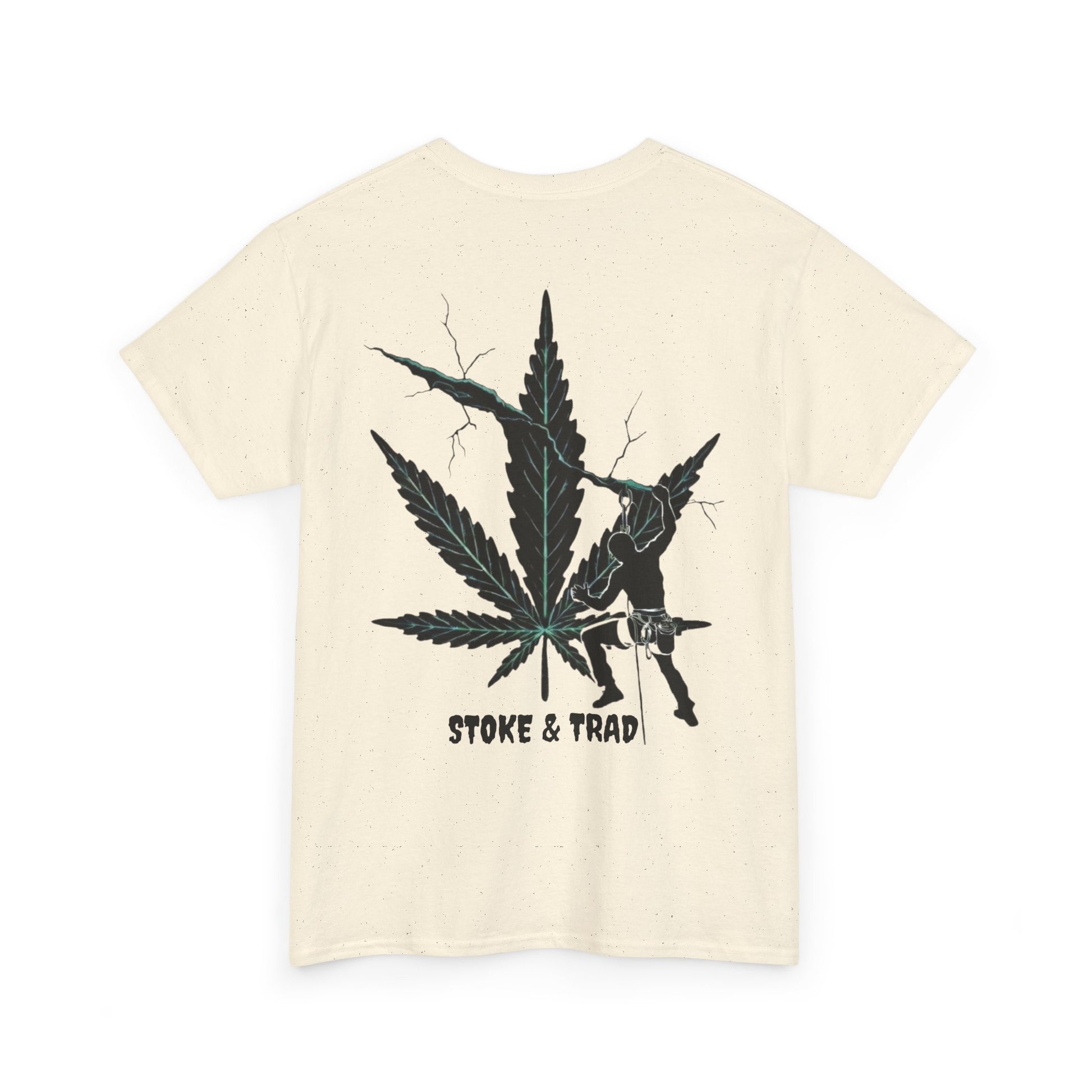 This classic crew tee celebrates the climb. The front bears a “Stoke & Trad” logo and bold back artwork shows a climber climbing crack with hemp leaf in background. Wear it trad climbing, belay-side chats, or bouldering. The fit sits relaxed at the shoulders and chest. The soft and smooth cotton keeps you comfortable whether you’re chalking up or grabbing a coffee after a send.