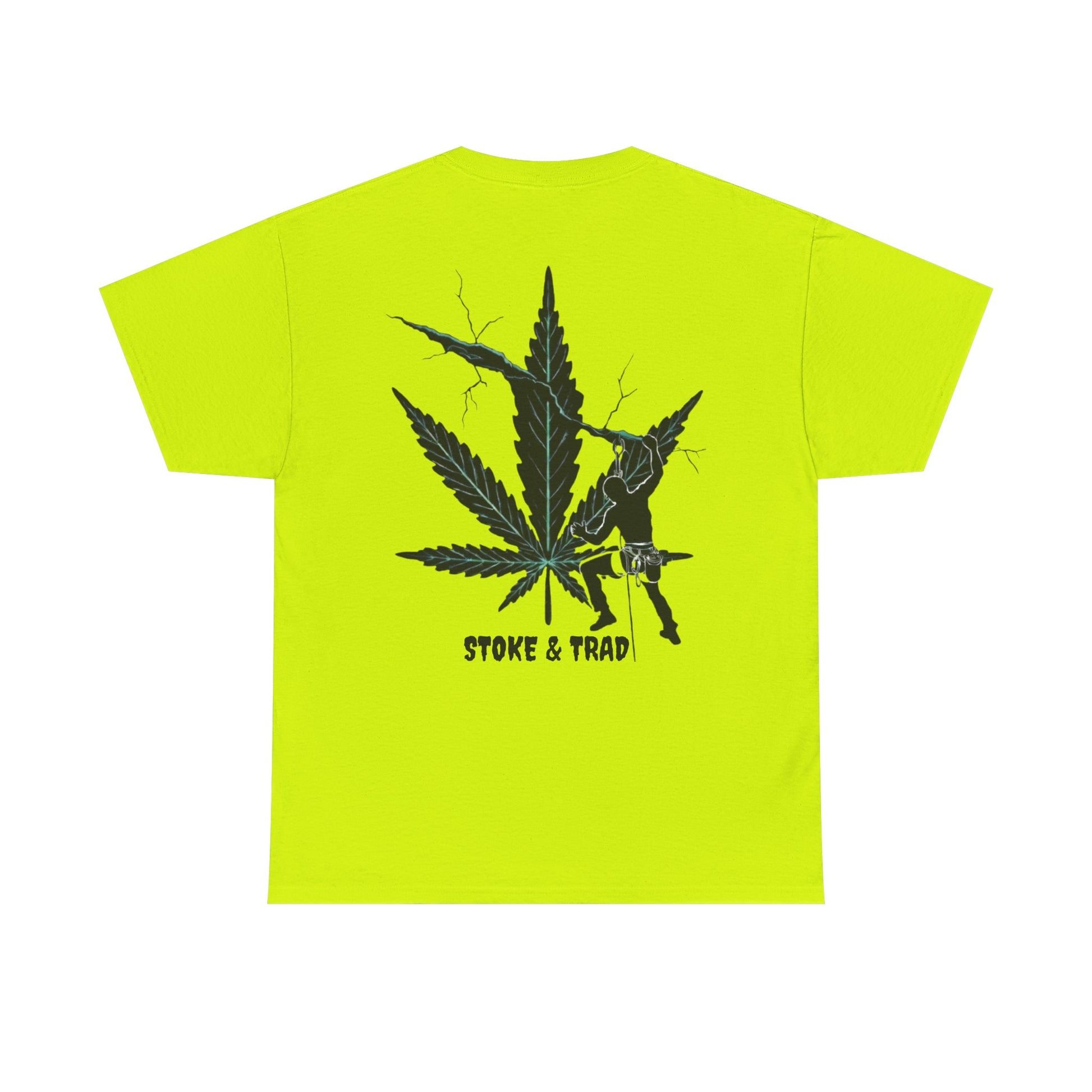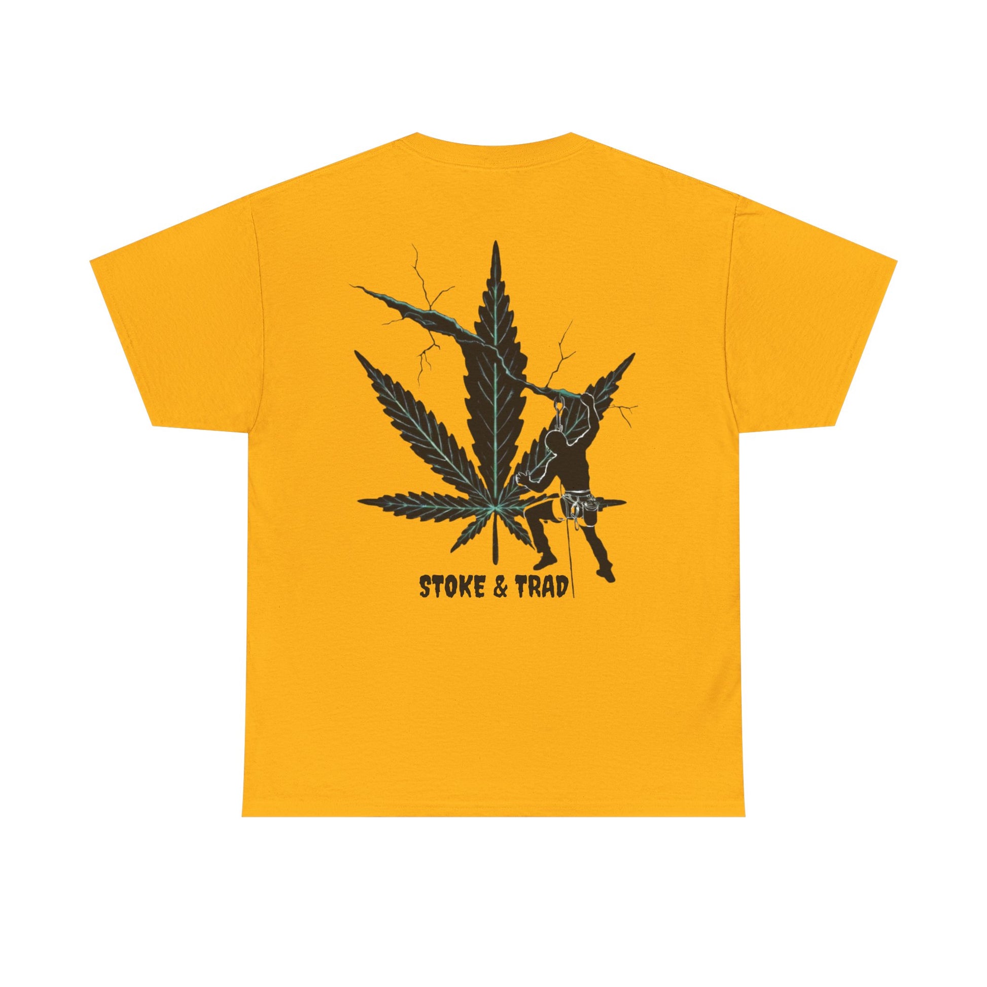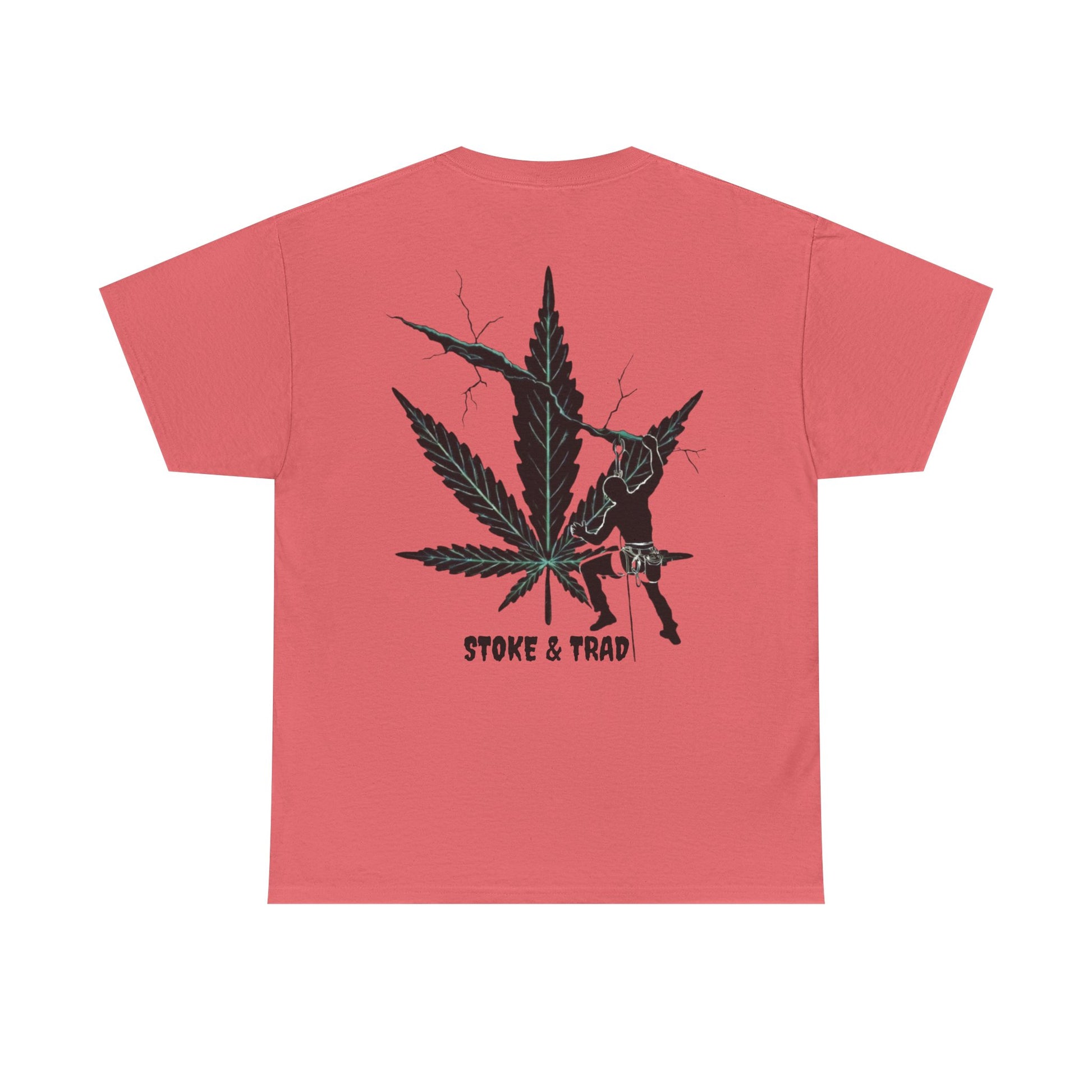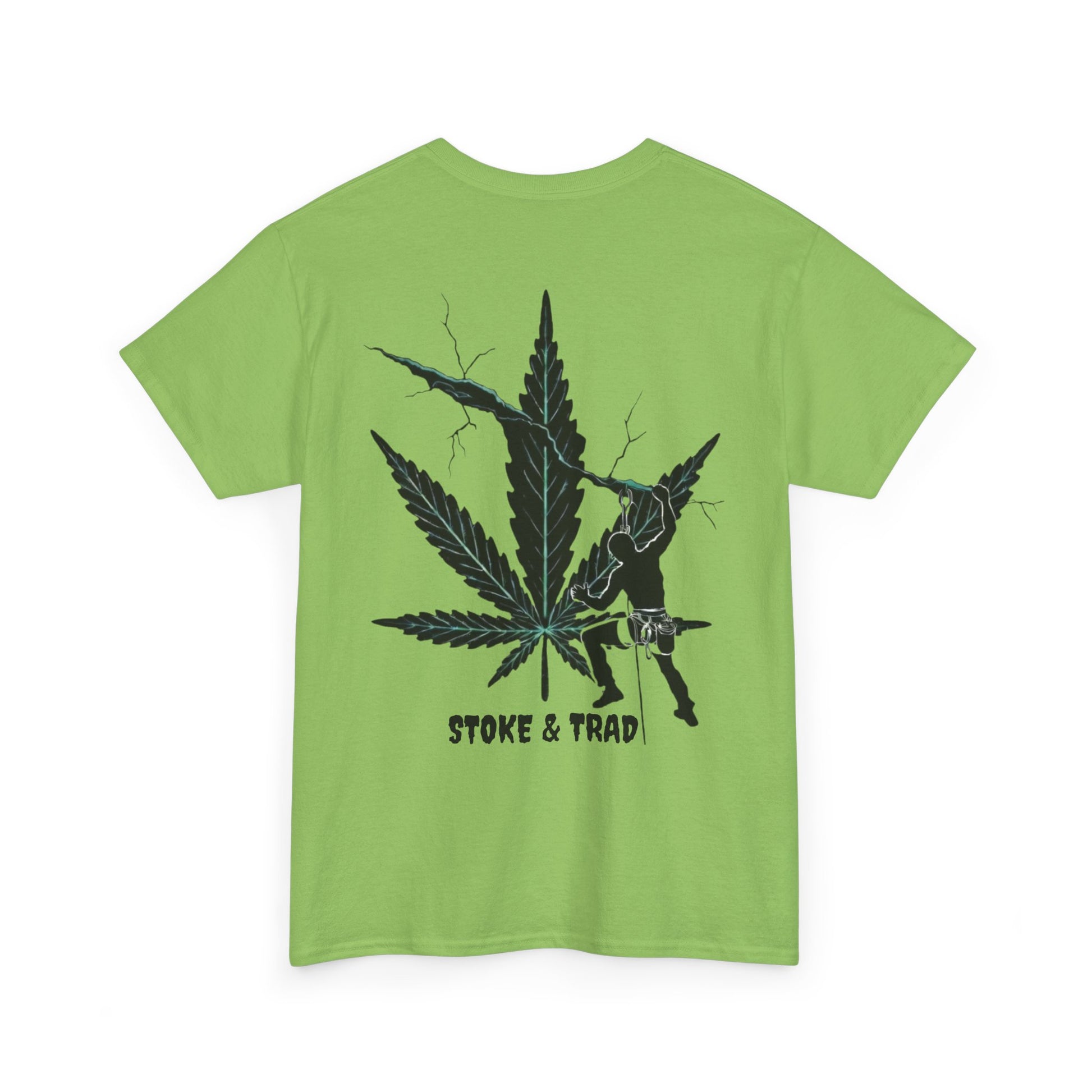 This classic crew tee celebrates the climb. The front bears a “Stoke & Trad” logo and bold back artwork shows a climber climbing crack with hemp leaf in background. Wear it trad climbing, belay-side chats, or bouldering. The fit sits relaxed at the shoulders and chest. The soft and smooth cotton keeps you comfortable whether you’re chalking up or grabbing a coffee after a send.