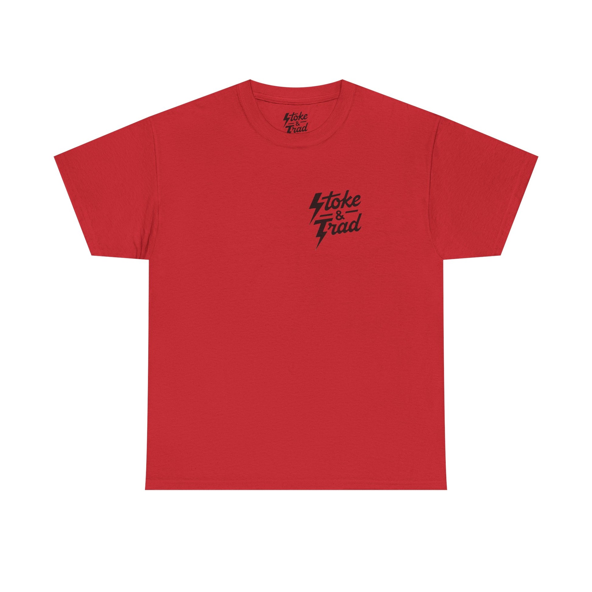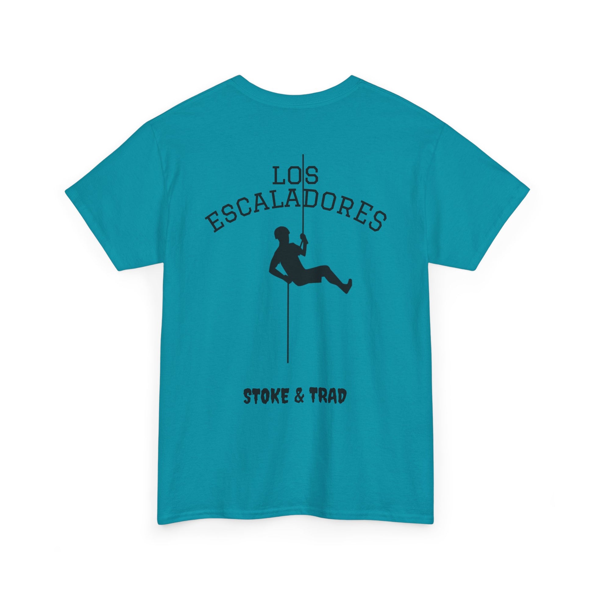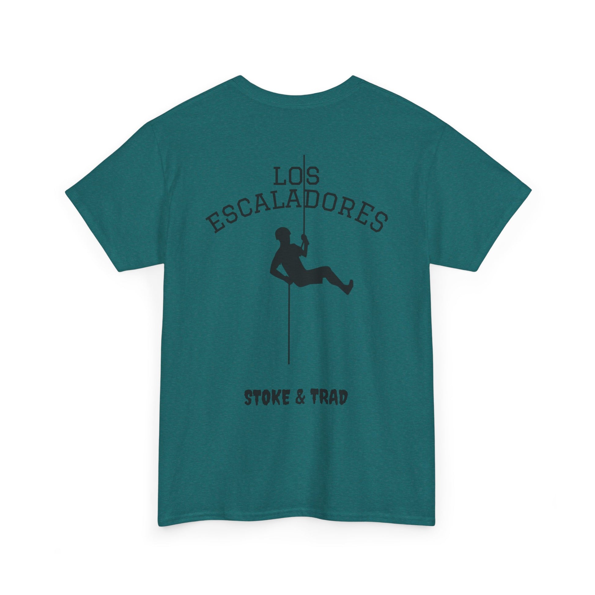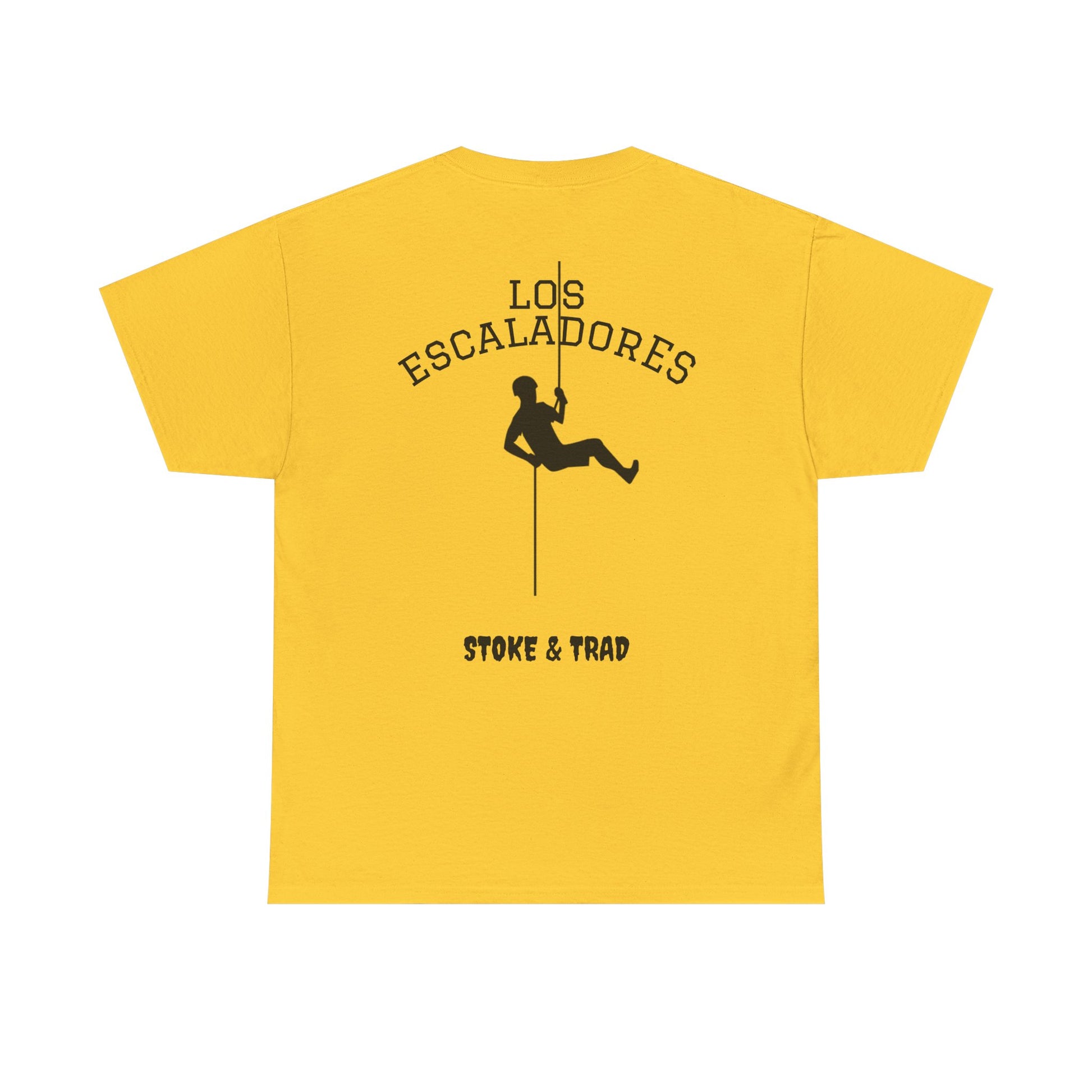 This classic crew tee celebrates the climb. The front bears a “Stoke & Trad” logo and bold back artwork shows a climber lowering and the words "Los Escaladores". Wear it rapping, bedside chats, or to the carnival. The fit sits relaxed at the shoulders and chest. The soft and smooth cotton keeps you comfortable whether you’re chalking up or grabbing a coffee after a send.
