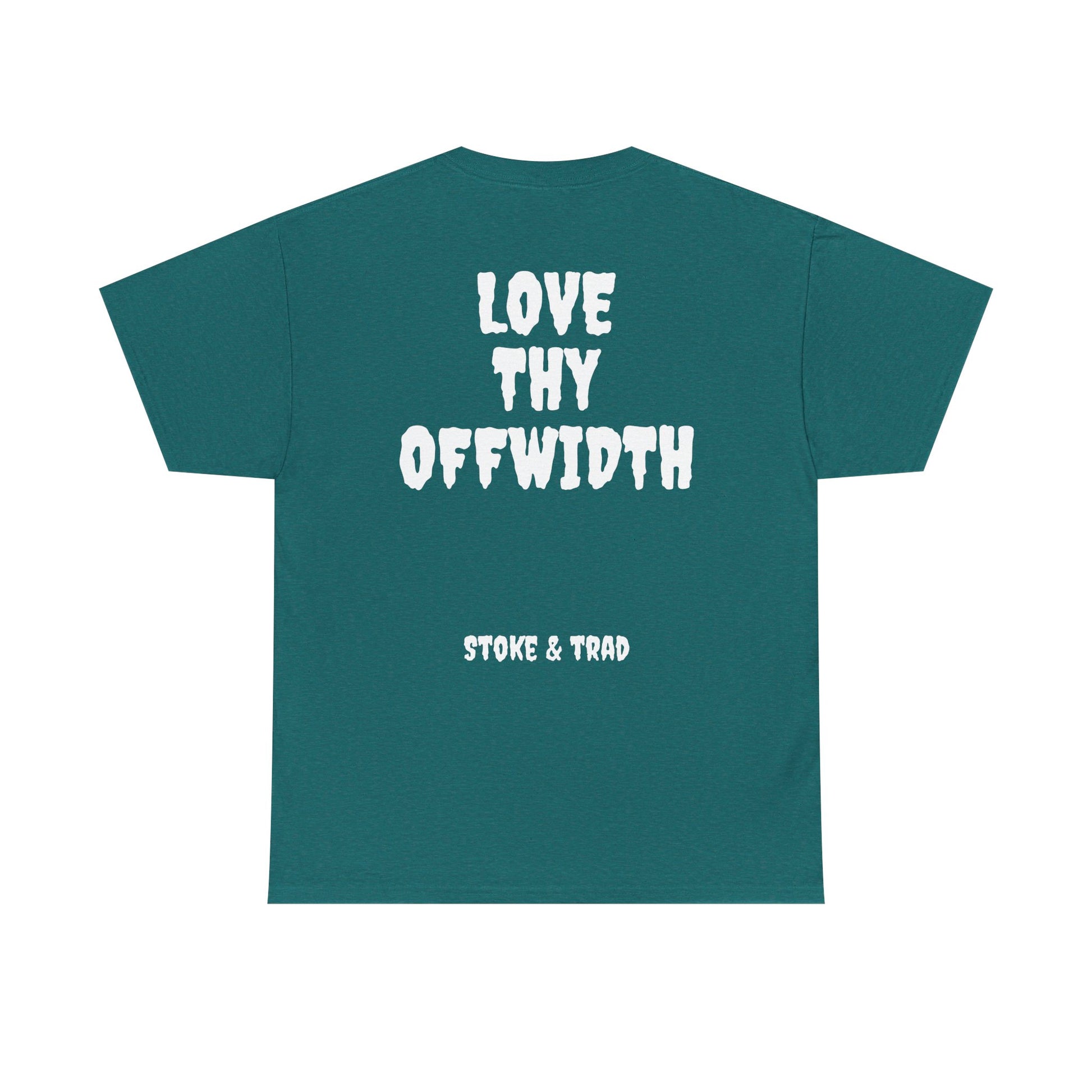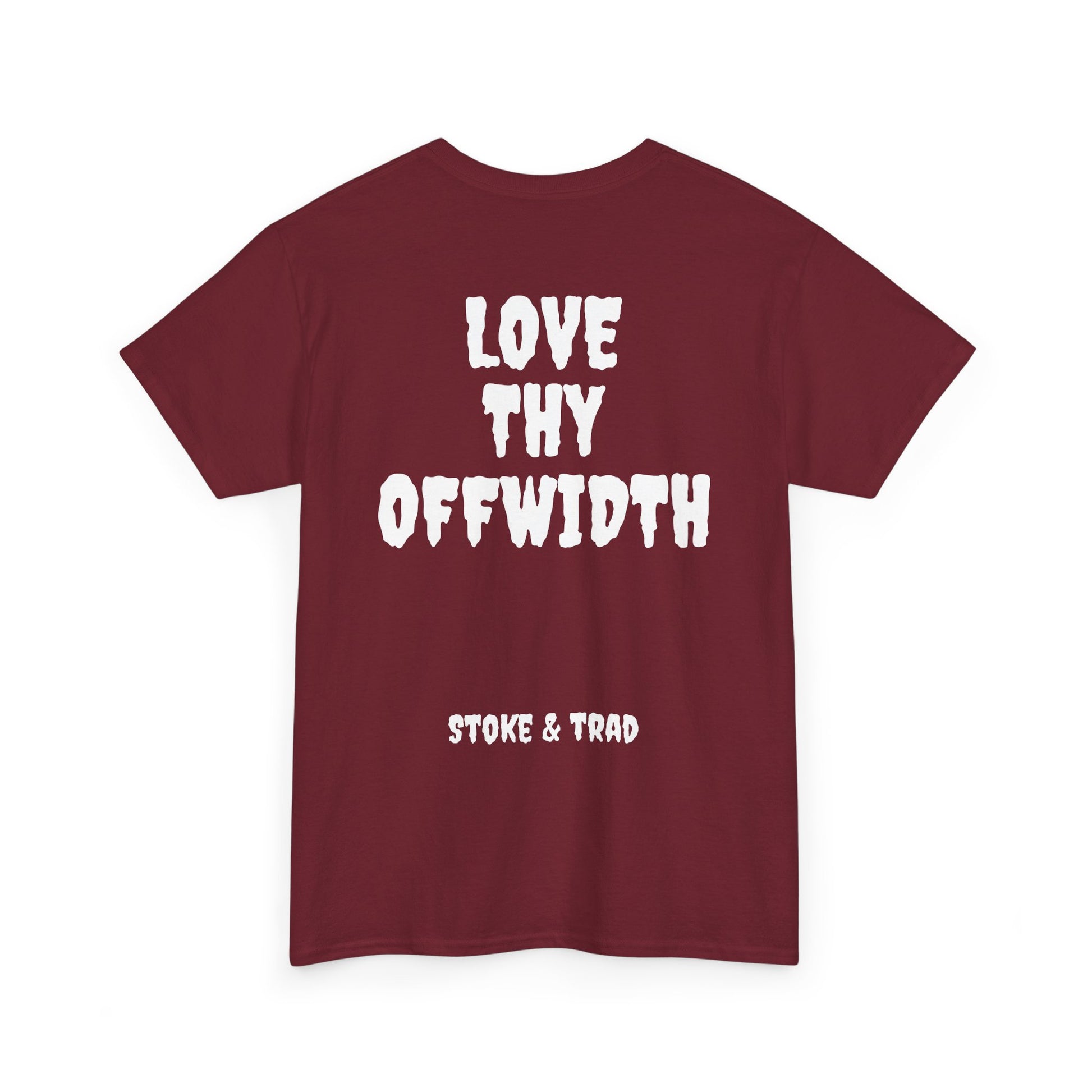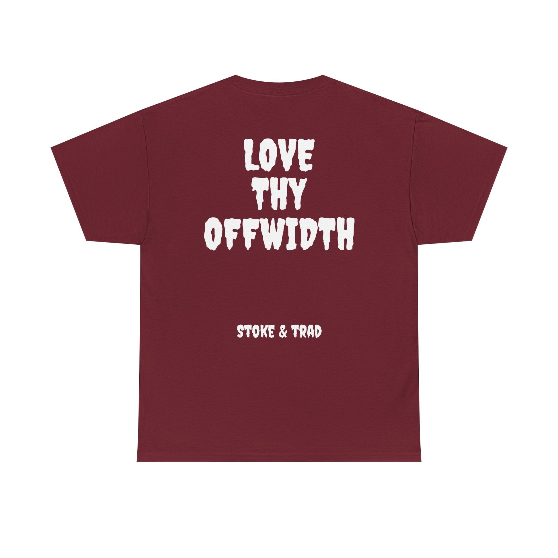 This classic crew tee celebrates the climb. The front bears a “Stoke & Trad” logo and bold back artwork shows words "love thy offwidth". Wear it sending, cleaning gear, or buying gear . The fit sits relaxed at the shoulders and chest. The soft and smooth cotton keeps you comfortable whether you’re chalking up or grabbing a coffee after a send.