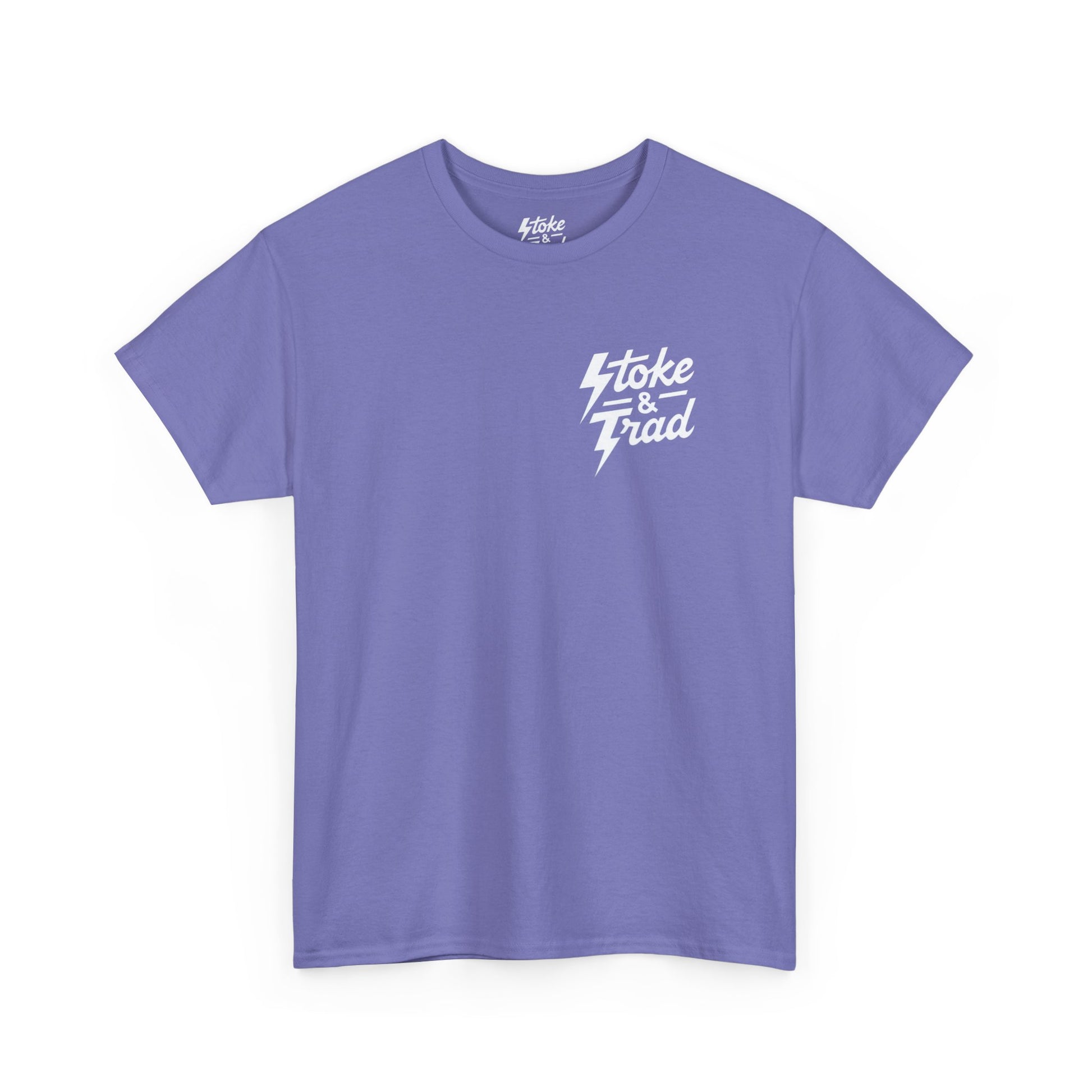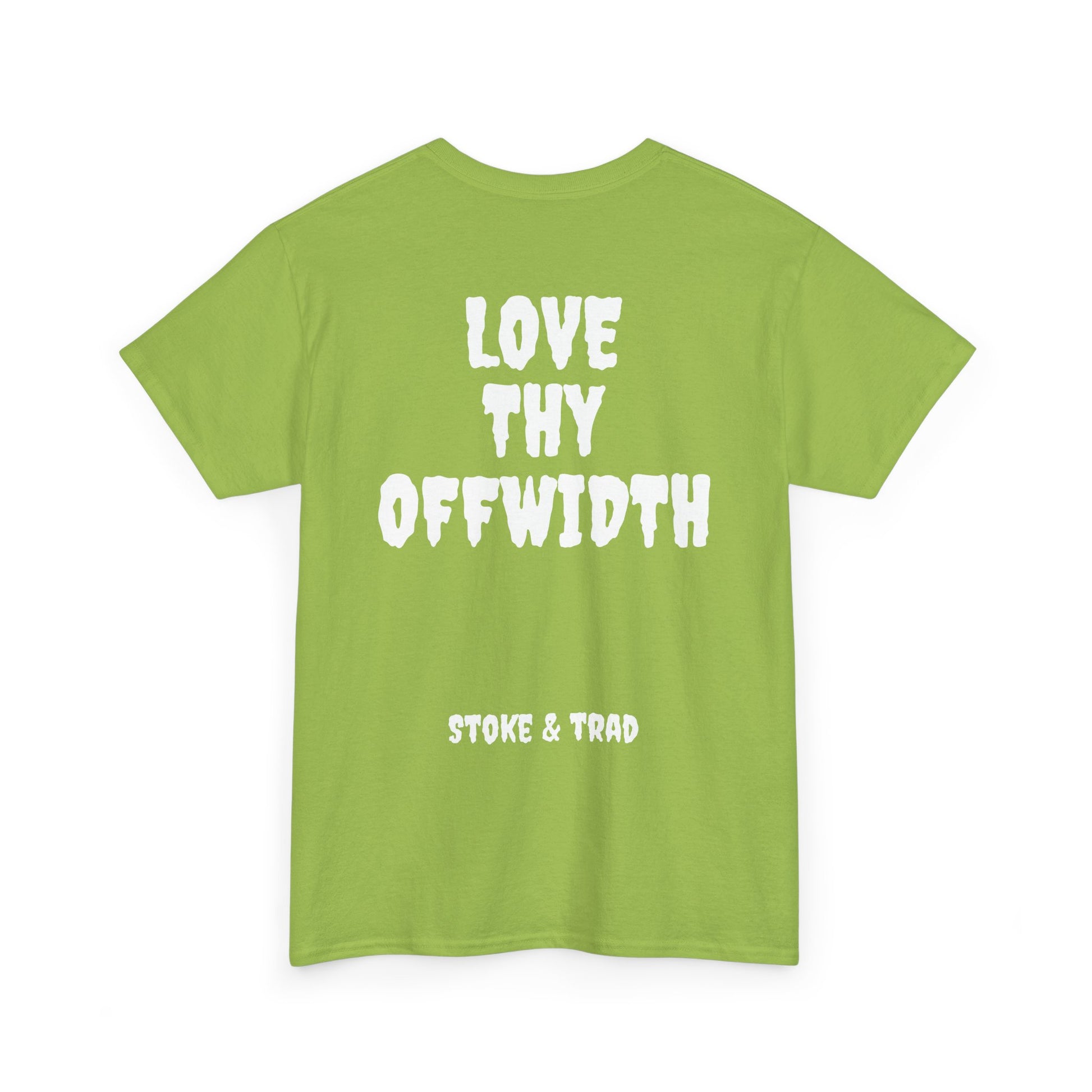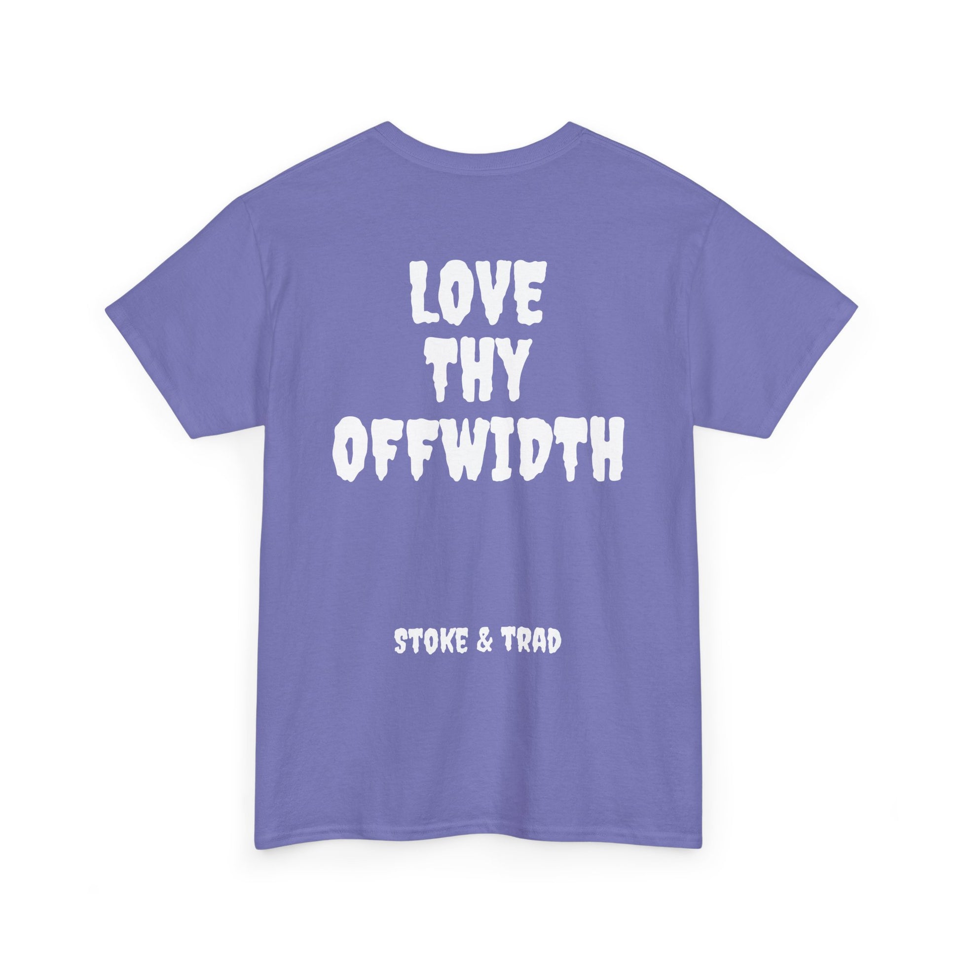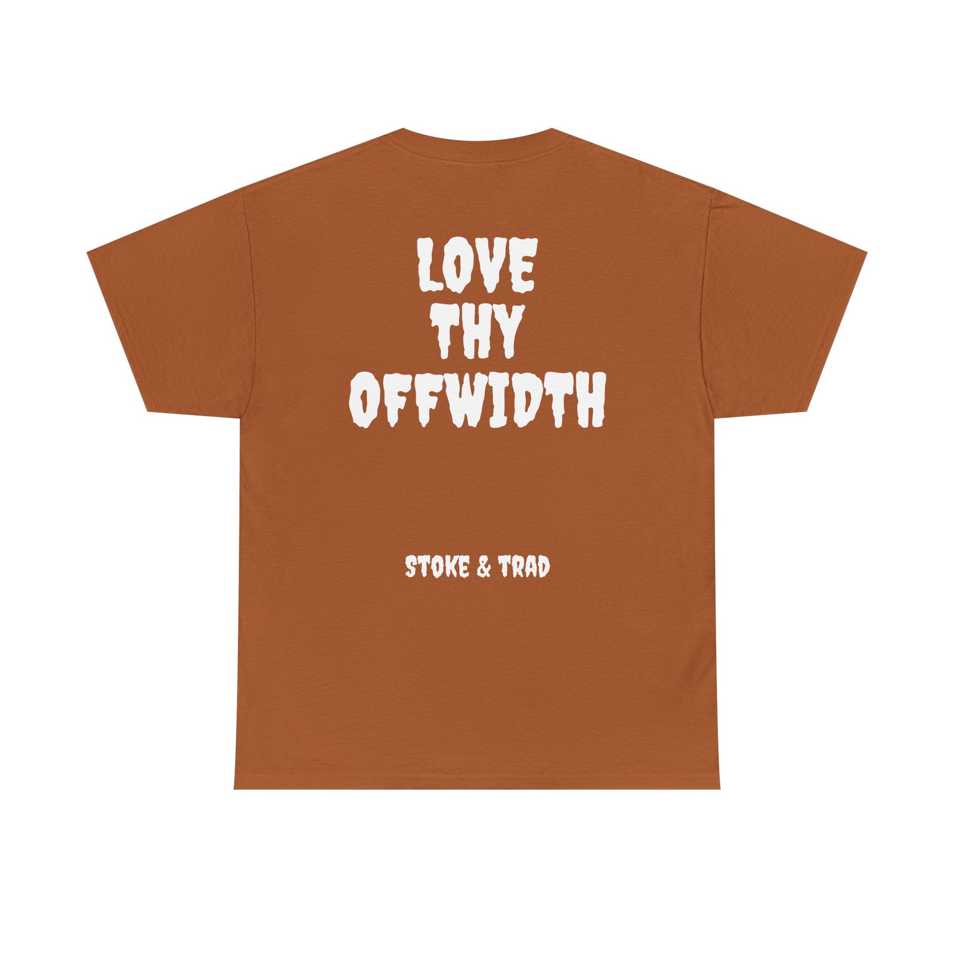 This classic crew tee celebrates the climb. The front bears a “Stoke & Trad” logo and bold back artwork shows words "love thy offwidth". Wear it sending, cleaning gear, or buying gear . The fit sits relaxed at the shoulders and chest. The soft and smooth cotton keeps you comfortable whether you’re chalking up or grabbing a coffee after a send.