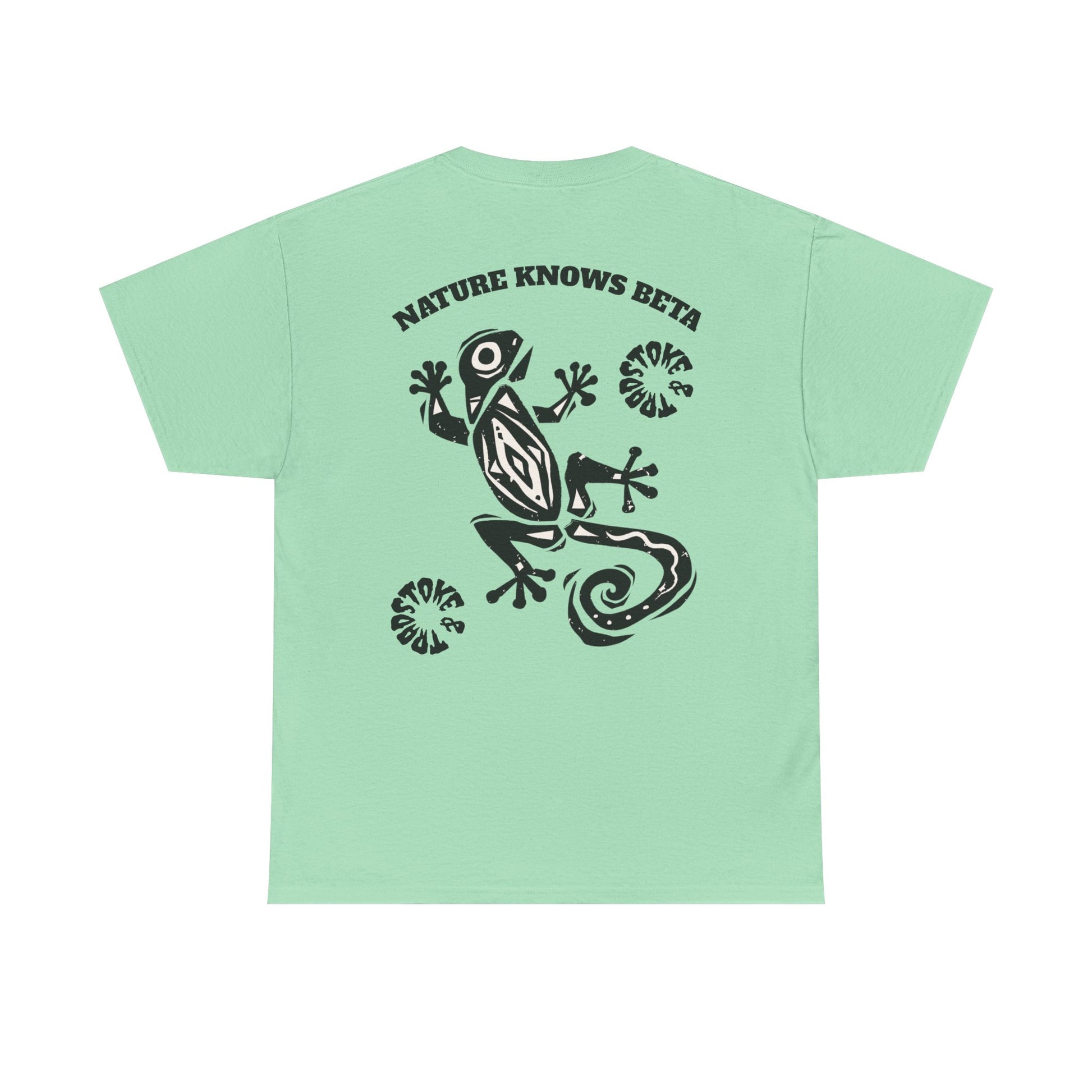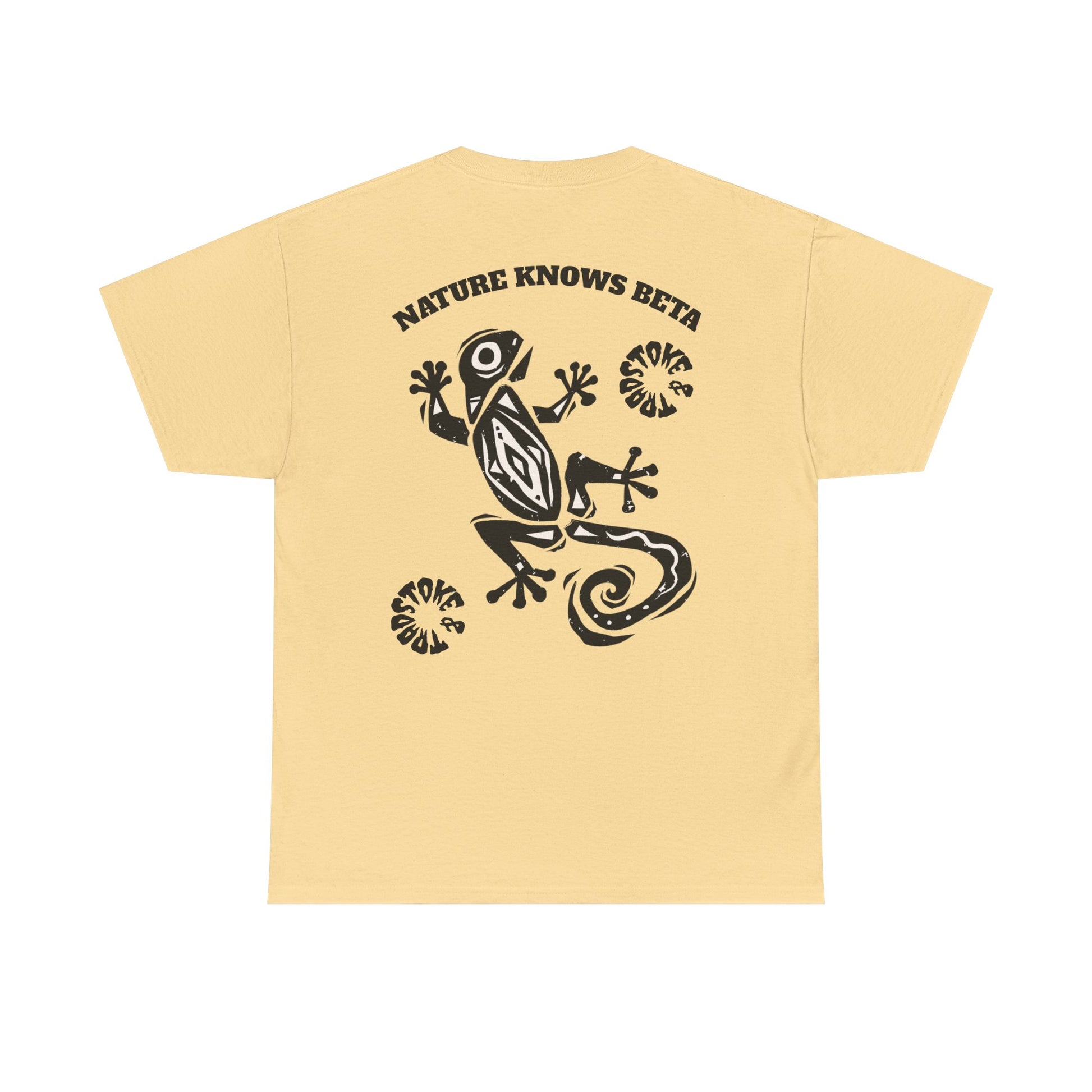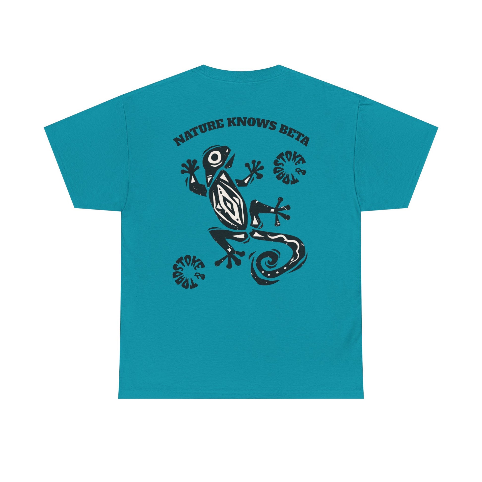 This classic crew tee celebrates the climb. The front bears a “Stoke & Trad” logo and bold back artwork showing a Climbing Geico and the words "Nature Knows Beta". Wear it trad climbing, belay-side chats, or bouldering. The fit sits relaxed at the shoulders and chest. The soft and smooth cotton keeps you comfortable whether you’re chalking up or grabbing a coffee after a send.