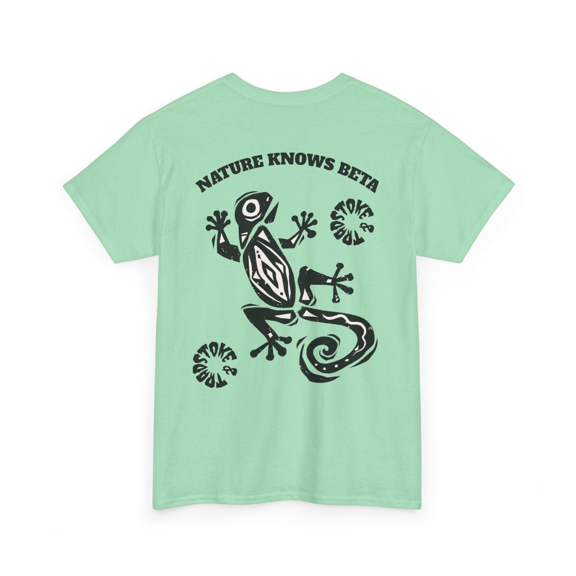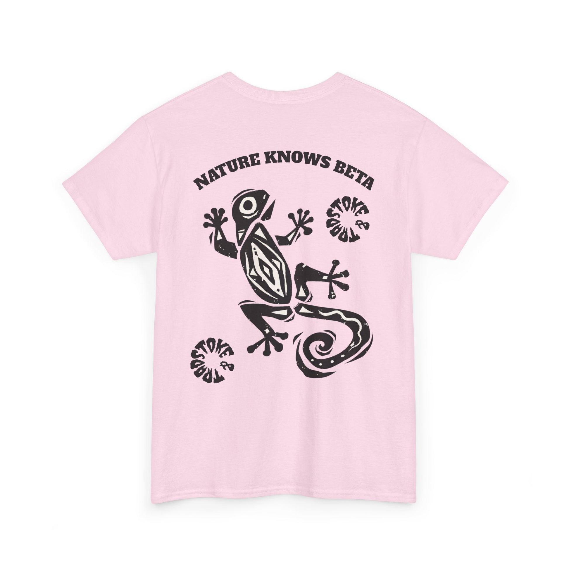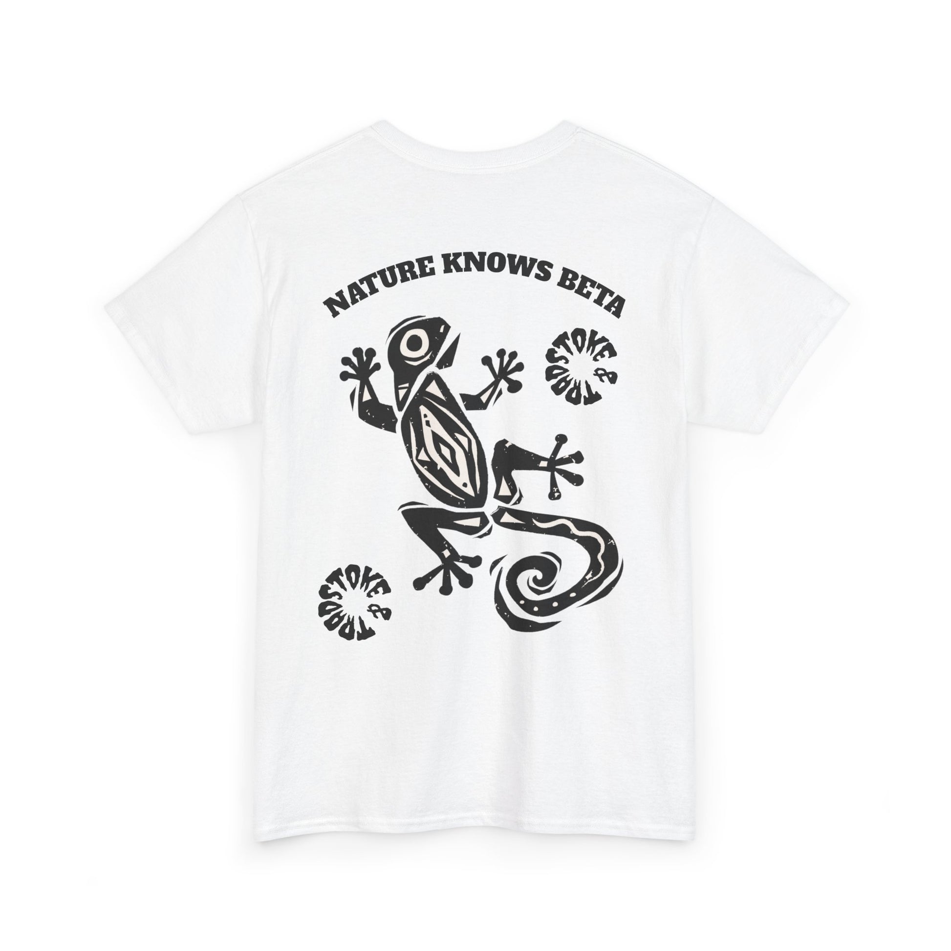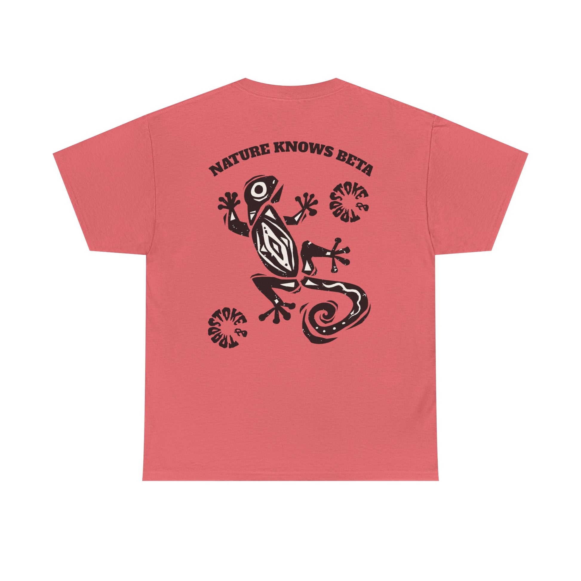 This classic crew tee celebrates the climb. The front bears a “Stoke & Trad” logo and bold back artwork showing a Climbing Geico and the words "Nature Knows Beta". Wear it trad climbing, belay-side chats, or bouldering. The fit sits relaxed at the shoulders and chest. The soft and smooth cotton keeps you comfortable whether you’re chalking up or grabbing a coffee after a send.