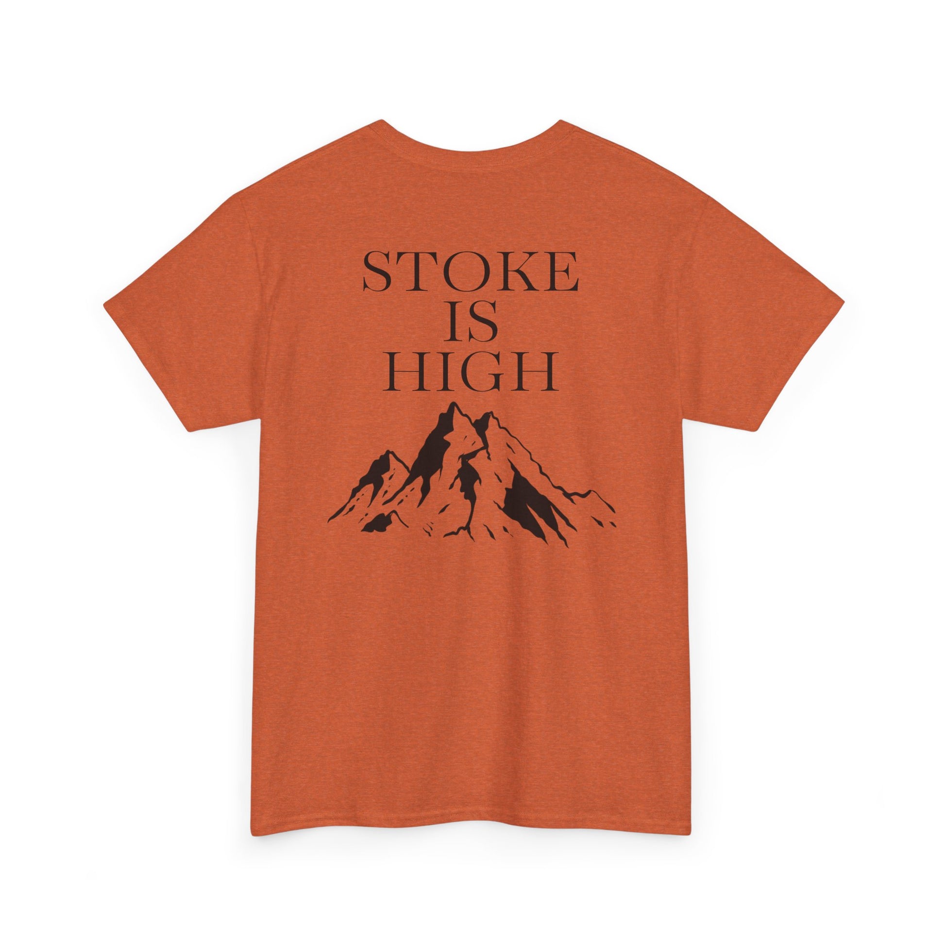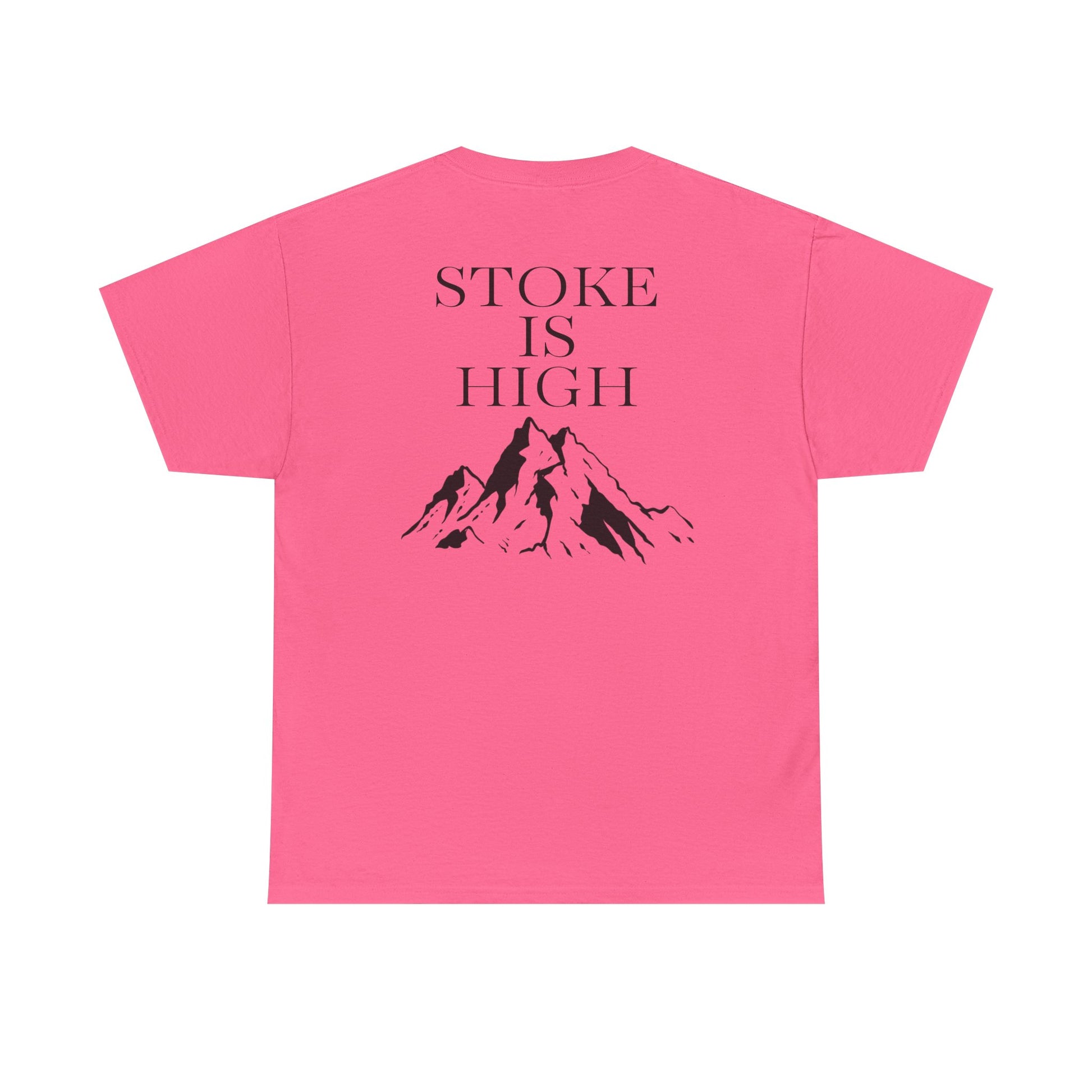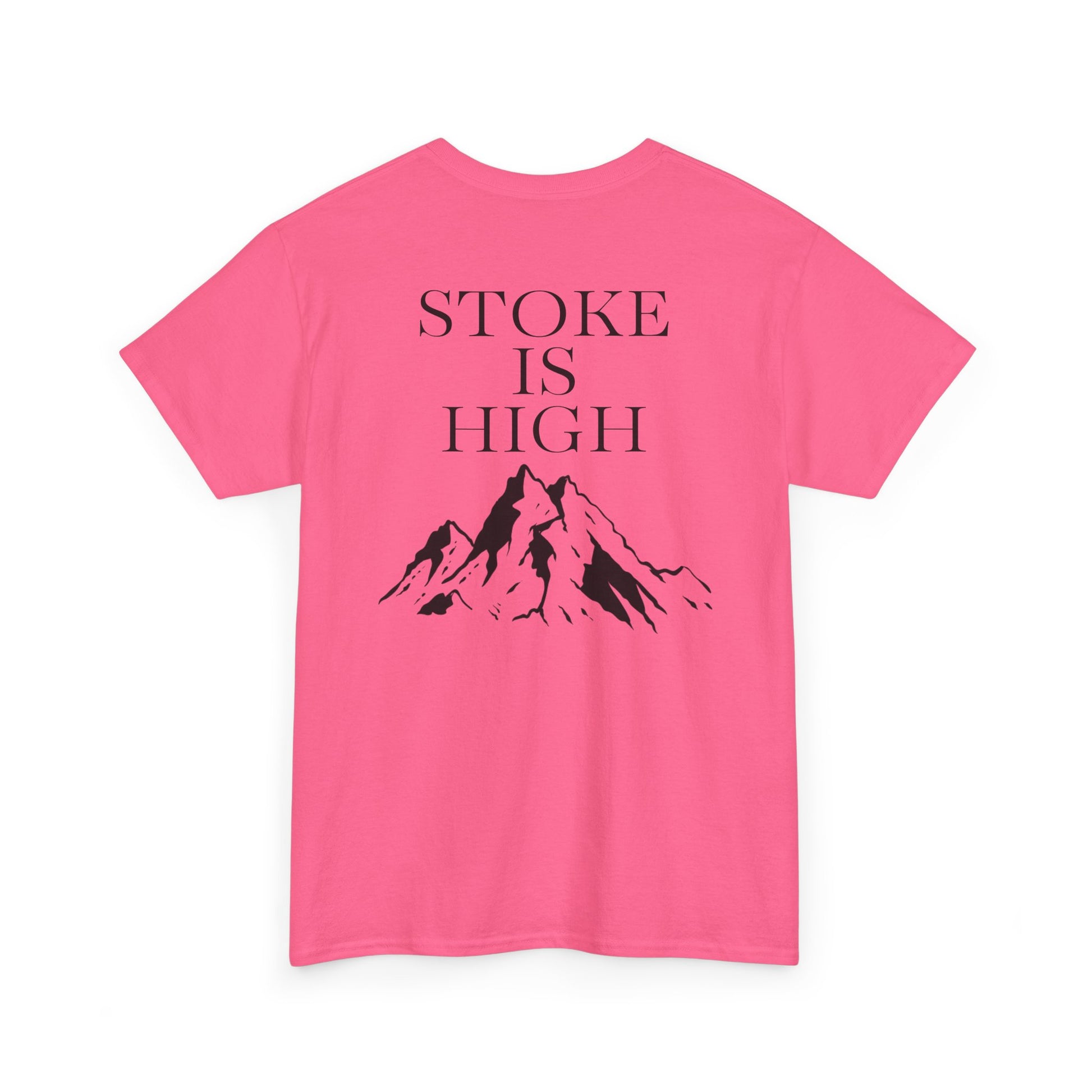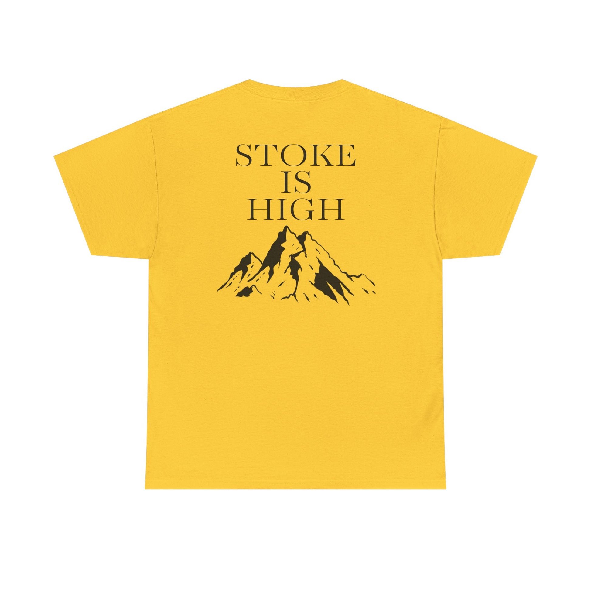 This classic crew tee celebrates the climb. The front bears a “Stoke & Trad” logo and bold back artwork of mountain peaks and the words "Stoke Is High". Wear it to a ping pong competition, tandem yoga, or sending crimp scampi. The fit sits relaxed at the shoulders and chest. The soft and smooth cotton keeps you comfortable whether you’re chalking up or grabbing a coffee after a send.